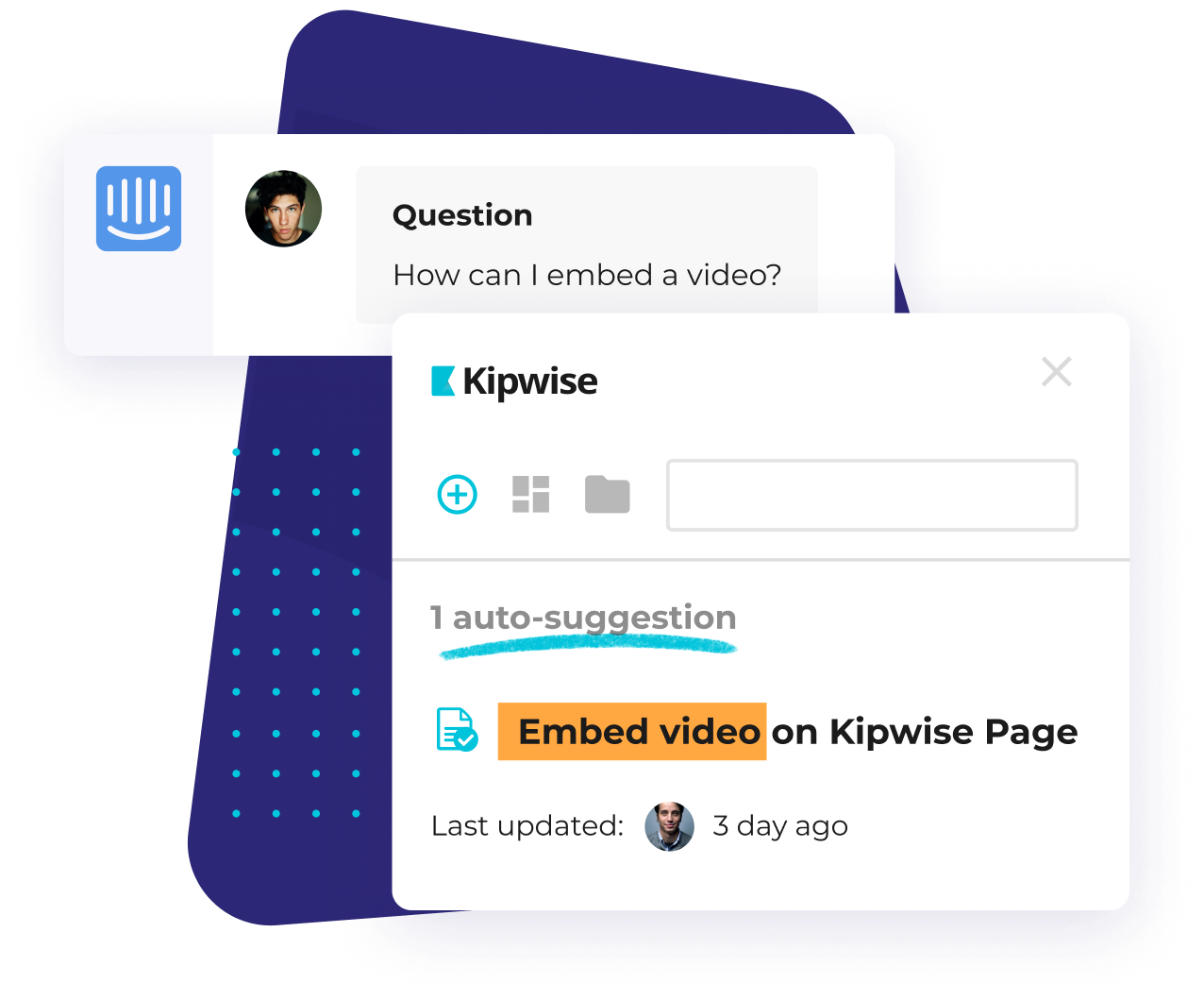 When your customer support agents answer tickets on Intercom, Kipwise can suggest relevant knowledge on your knowledge base automatically. Greatly reducing the time needed for agents to search for information and helping them resolve customer tickets much more efficiently.