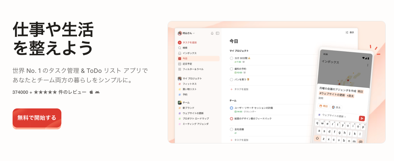 価格: Todoistには無料プランがあり、基本的なタスク管理機能を利用できます。有料プランは月額338円/ユーザーから。